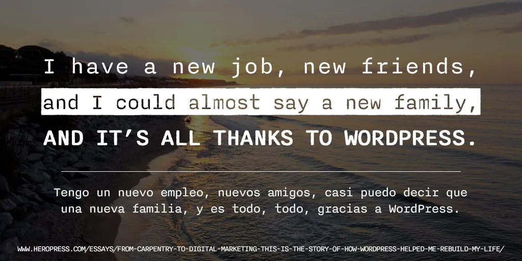 HeroPress: From carpentry to digital marketing, this is the story of how WordPress helped me rebuild my life. – De la carpintería al marketing digital, esta es la historia de cómo WordPress me ayudó a reconstruir mi vida.